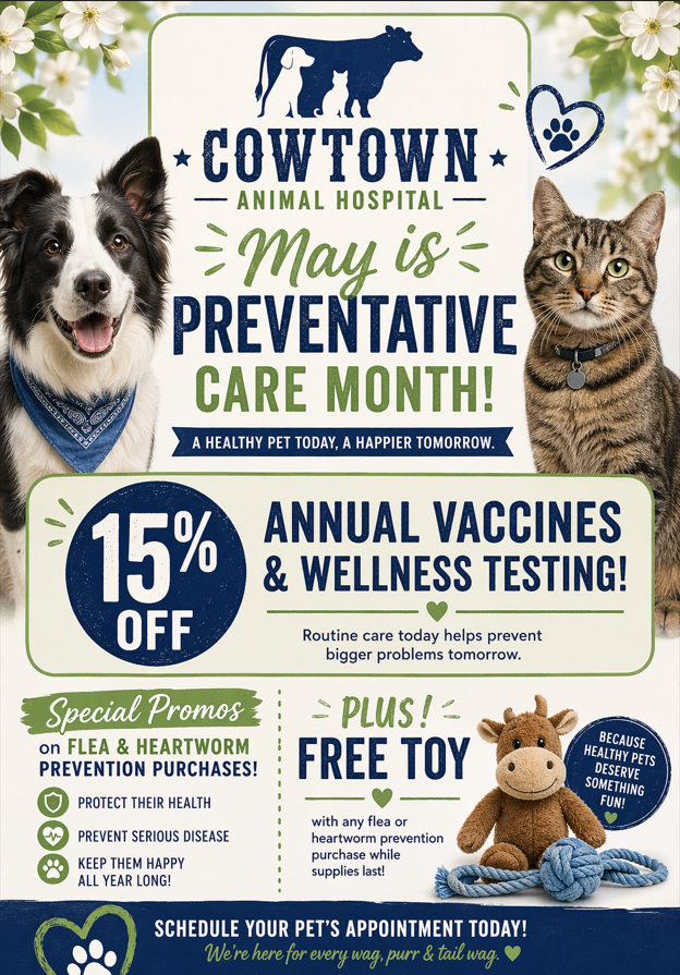 At Cowtown Animal Hospital, our mission is to provide exceptional veterinary care with compassion, integrity and a personal hometown touch. We are committed to improving the health and well-being of every pet we serve while building lasting relationships with the families who trust us with their care.